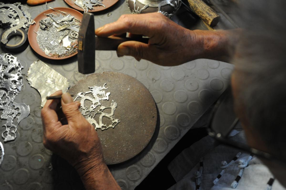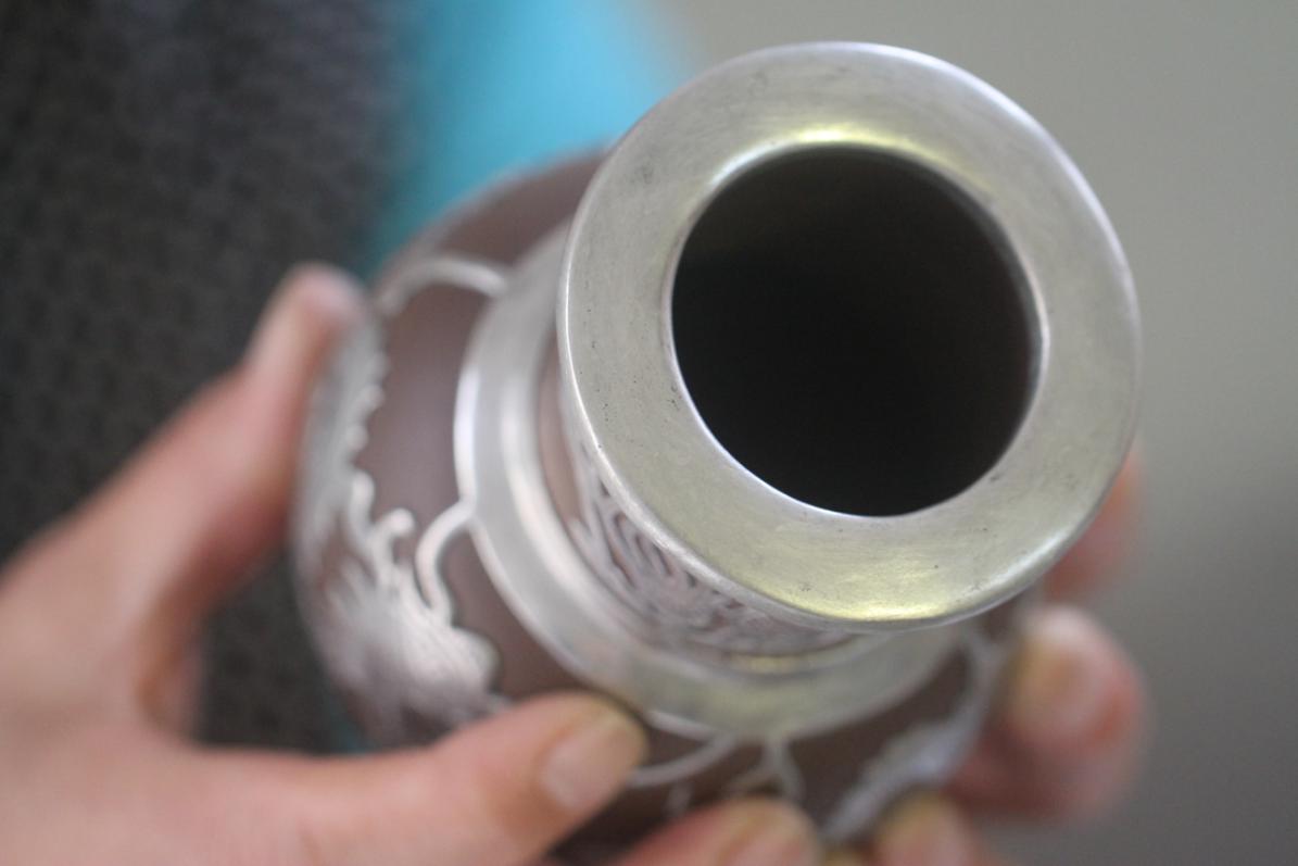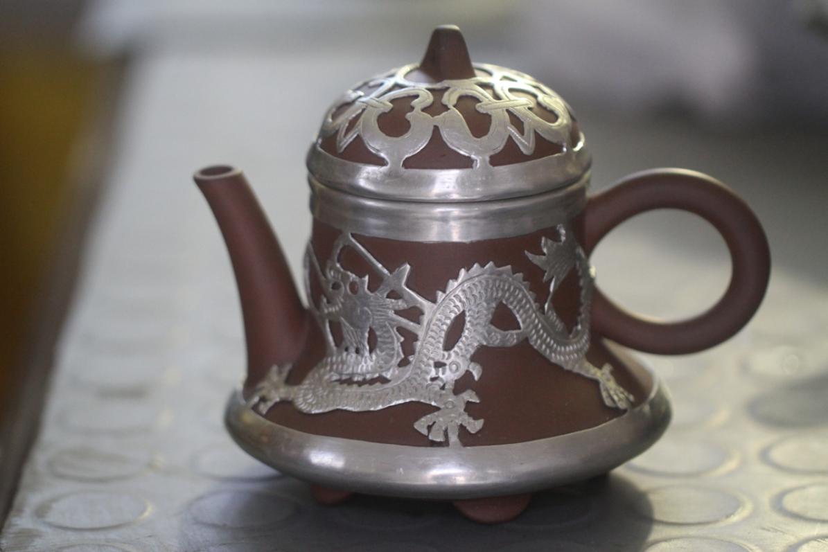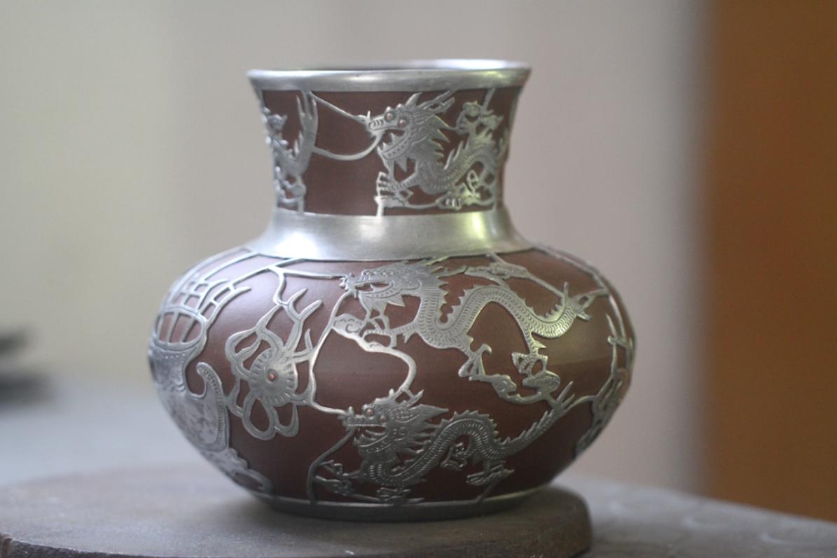 锡镶技艺为威海独有,也是我国唯一的锡镶技艺,创始于清末,用纯锡制作的各种图案镶在江苏宜兴紫砂茶具等上,成品高雅古朴的风格、精妙绝伦的做工令人叹为观止。十九世纪末,谷家疃的谷年和、谷宝和兄弟在当地开办了铜锡铺,他们借鉴民间的锡补技术创造了独特的锡镶工艺。不久,典雅古朴的锡镶茶具受到追捧,远销海外。与日俱增的市场需求,使得锡镶制造业在威海繁荣起来,谷家的新和成锡镶更是一枝独秀,并开办名为“新和成”的工厂,锡镶成为当时最早打入欧洲市场的威海传统技艺。