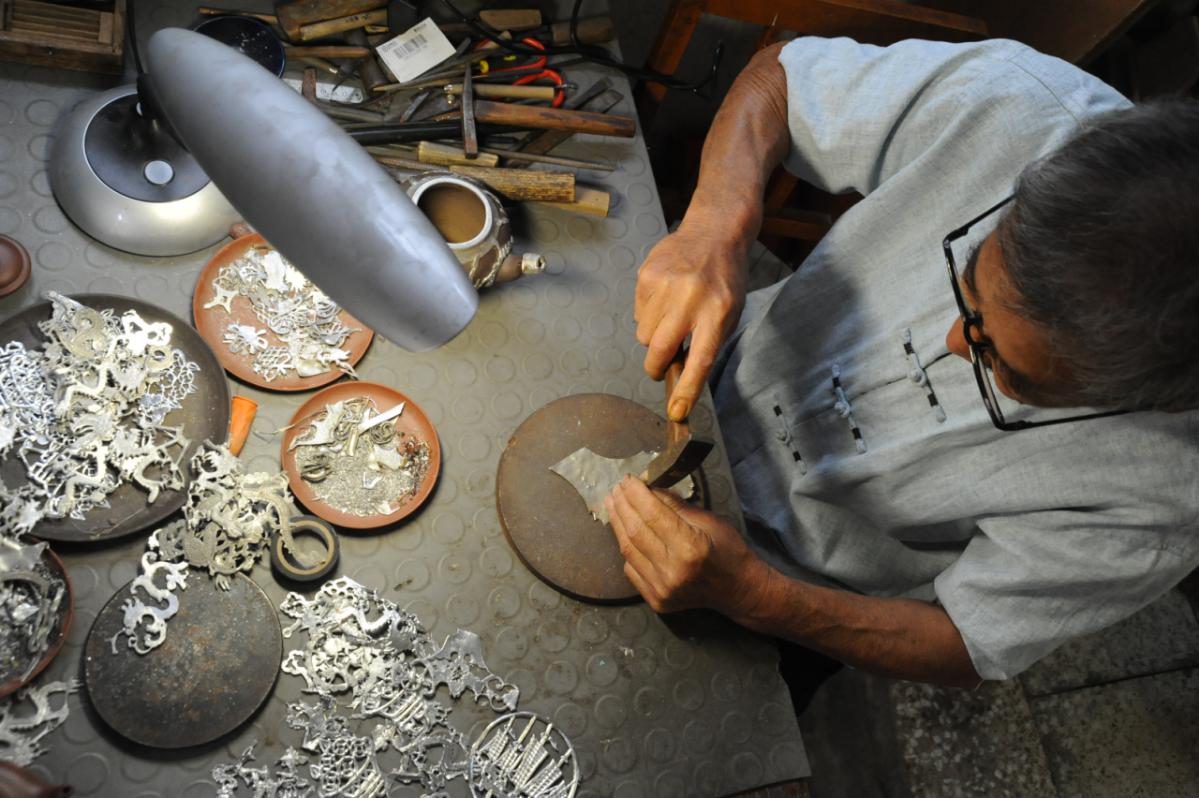 改革开放给威海锡镶业带来新的发展契机。上世纪80年代,许多外国友人慕名联系到威海经贸部门的工作人员,询问威海是否还有锡镶制品出售。此时,谷宝和的嫡孙谷祖威也想着重新将家族这门手艺发扬光大,便聘请了当时80岁左右、曾是“新和成”伙计的王正修老人担任技术顾问。两人几经努力,克服重重困难,共同修复了藏在家中的传统模具和工具,锡镶制作技艺终于再次复原,重新打出了“新和成”的传统品牌。
