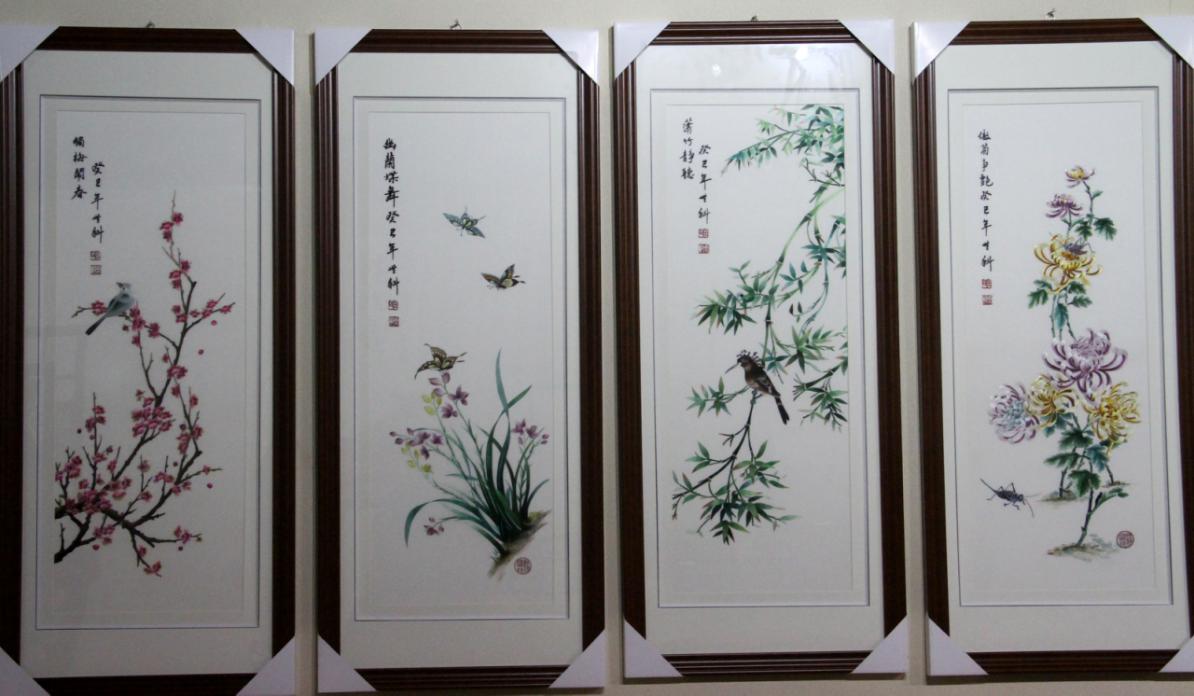 鲁绣作品梅兰竹菊