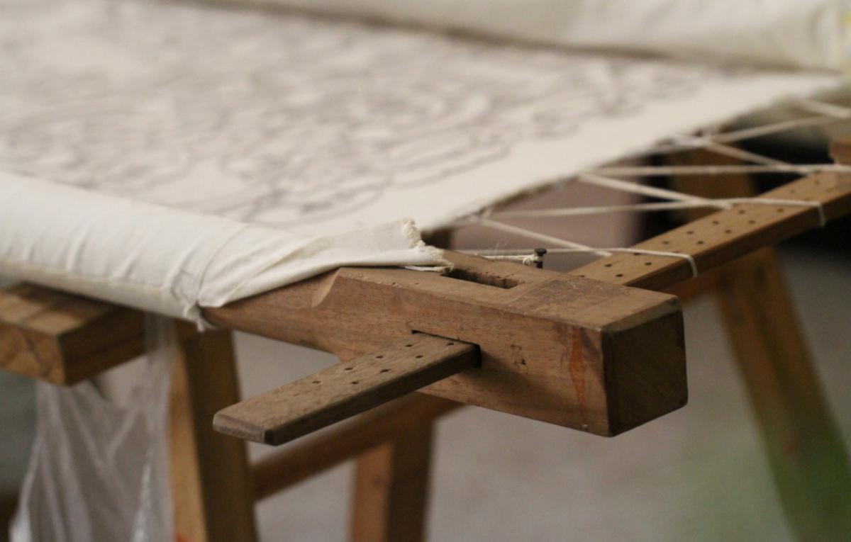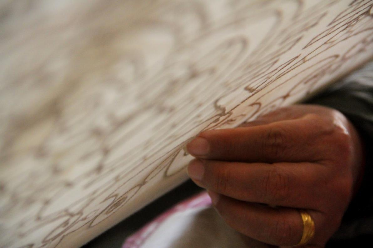 农闲时节,文登女子习惯三五成群聚在一起,在叫做“撑子”的绣花架上飞针走线,用不同的技法绣出图案。一幅幅栩栩如生、美丽吉祥的绣品伴着女人们朗朗的笑声,跃然布面。