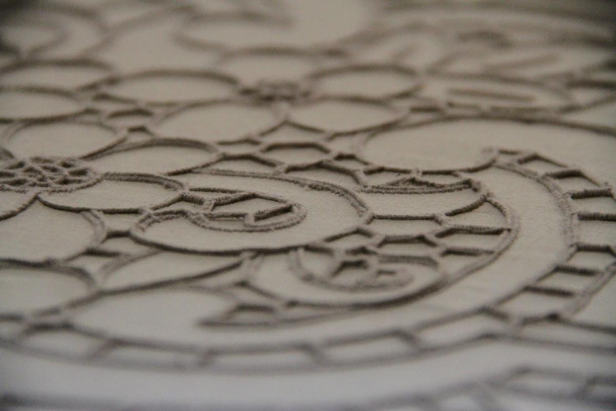 上世纪30年代,经胶东民间传统鲁绣艺人的演绎整理,诞生了通过“抽、绣、编、锁、勒、挑、补、雕”等技法,在棉麻混纺布上制作各种纹饰纹样的“抽绣”艺术,赋予了文登鲁绣浓郁的地方特色。1936年,文登境内经营刺绣抽纱的大小庄号有517家之多,从业1960人。日军侵占文登后,此业萧条,抗日战争胜利后得到恢复发展。